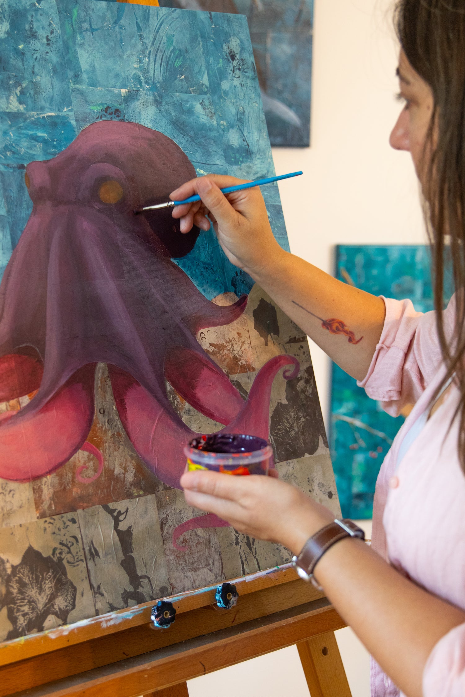 Katia’s love of nature stems from her childhood and upbringing. She had easy access to the forest, fields, and creeks where she would play around and explore. She developed an interest and bond with nature very early on, and has continued to educate herself over the years through multitudes of documentaries and travel. Katia’s artistic work reflects her deep respect for the environment. She paints wildlife with a semi-realistic, yet slightly whimsical approach, which she contrasts with textured, turbulent backgrounds she creates. Katia's body of work highlights the beauty of nature while integrating nuances of our ecological impact.