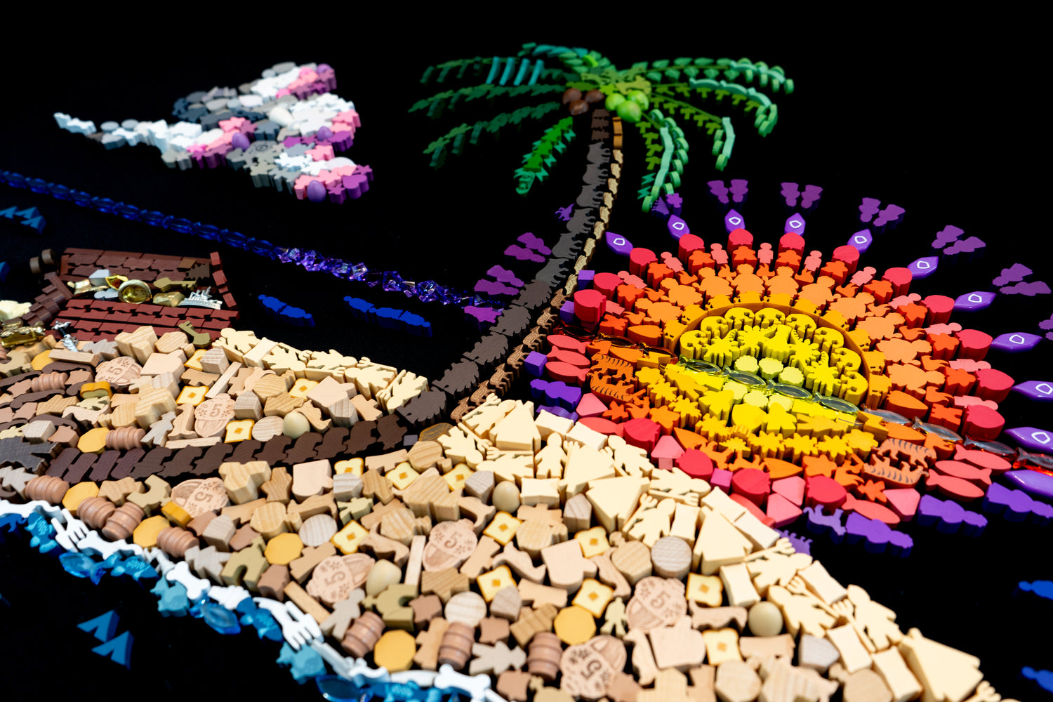 She developed a distinctive style by creating stunning images using items no one would have considered an art medium. She founded her company Board Game Art Creations and dedicated five years creating mosaics she compiled into a yearly calendar for board gamers.
